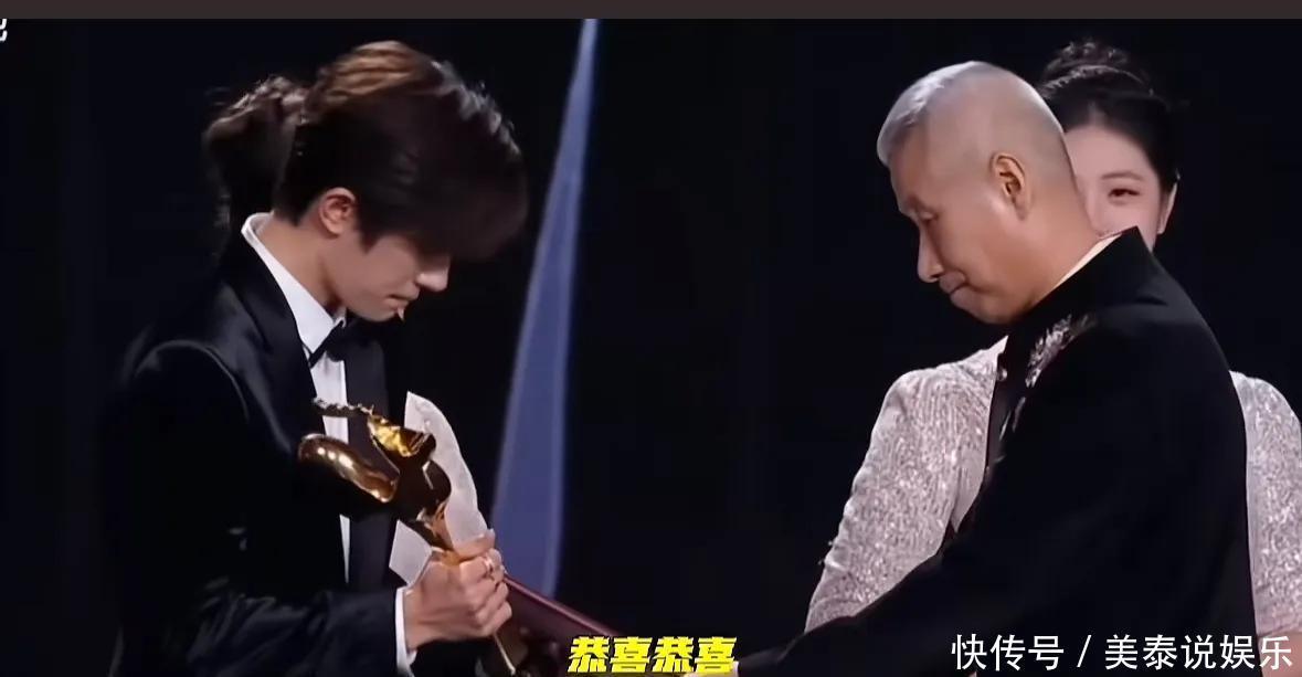 易烊千玺获奖后,台下的明星们也第一时间送上了祝福。坐在附近的大鹏和黄晓明几乎同时站起身,大鹏率先伸出手与易烊千玺拥抱,拍了拍他的后背,眼神里满是认可;黄晓明则紧随其后,给了他一个真诚的拥抱,脸上挂着灿烂的笑容。